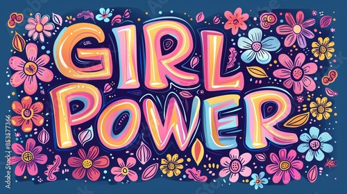 Colorful Girl Power text in a free-spirited, hippie-inspired font with floral accents.