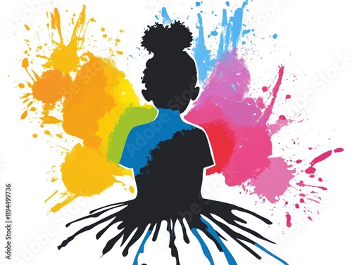 Colorful Girl Silhouette Ink Splashes Abstract Art Design