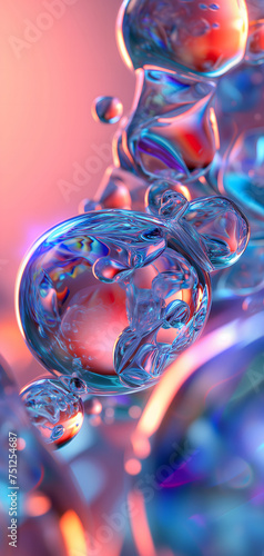 Colorful glass bubbles and waves background and wallpaper. Neural network generated in January 2024. Not based on any actual scene or pattern.