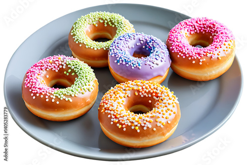 Colorful Glazed Doughnuts with Sprinkles on a Gray Plate - Still Life Food Photography