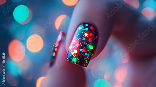 Colorful Glitter Nail Art Design with Bokeh Background Effects