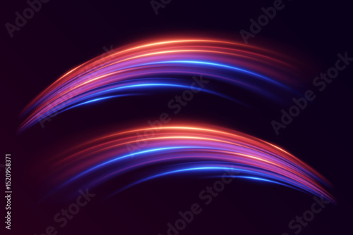 Colorful glowing light lines, with motion effect and futuristic speed lines.