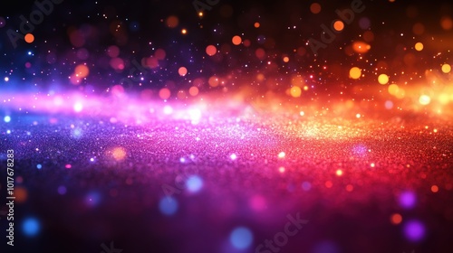 Colorful Glowing Particles Spread Across Horizon In Abstract Vibrant Background For Futuristic And Festive Designs