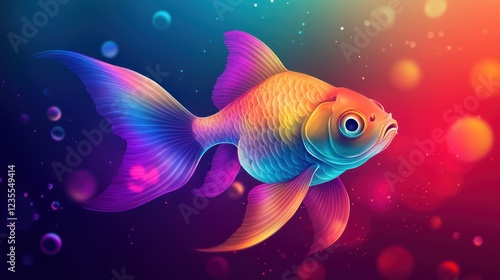 Colorful goldfish swims in vibrant underwater scene; website background