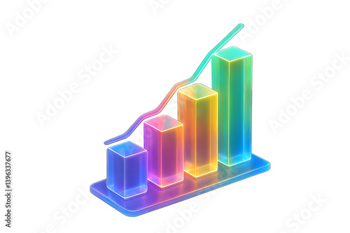 Colorful gradient 3D glass bar chart representing financial growth isolated against transparent background for trendy web design- gráfico de barras de vidrio