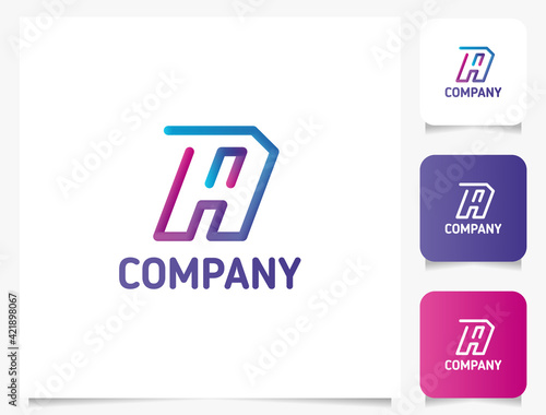 Colorful gradient 3d line letter A monogram initial logo with three icons