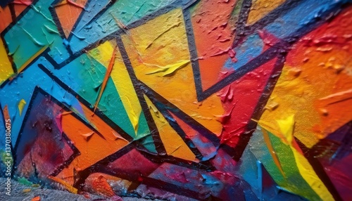 Colorful graffiti art on rough concrete surface