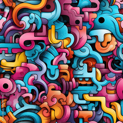 Colorful graffiti pattern illustration, Seamless repeat background.