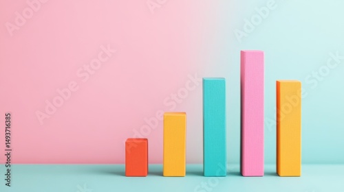 Colorful Growth Chart Ascending Textured Bars on Pastel Background, business, infographic