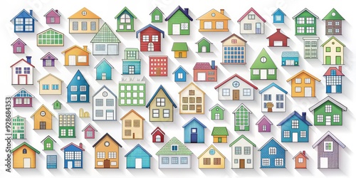 Colorful Hand Drawn Houses with Long Shadows, house , home , real estate , illustration