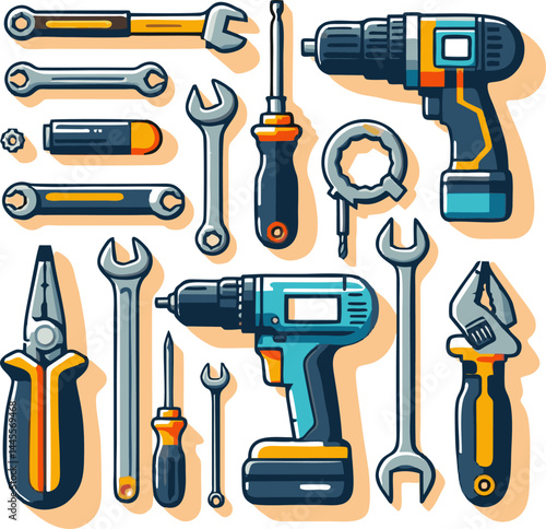 Colorful Hand Drawn Tool Icons Set for DIY Projects