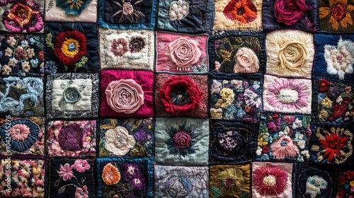 Colorful Handcrafted Embroidery Patchwork Artwork