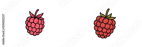 Colorful hand-drawn raspberries on a white background showing two distinct varieties