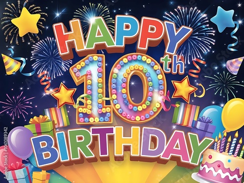 Colorful Happy 10th Birthday Celebration