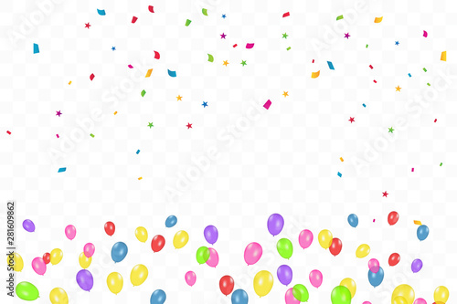 Colorful Happy Birthday Background With Balloons And Confetti. Celebration Event Party. Multicolored. Vector