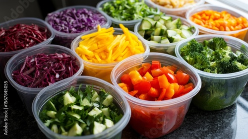 Colorful healthy salad bowl meal prep, arranged neatly in containers