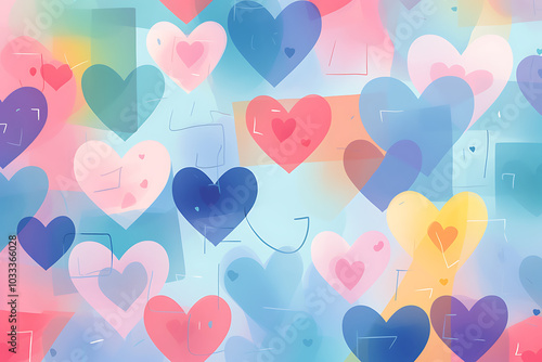 Colorful hearts on pastel background create cheerful and playful atmosphere