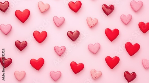 Colorful Hearts on Pink Background for Valentine's Day Decoration