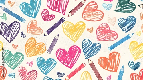 Colorful hearts on white background seamless pattern for Valentine's Day