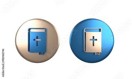 Colorful Holy bible book icon isolated on white background. Circle button. 3D render illustration