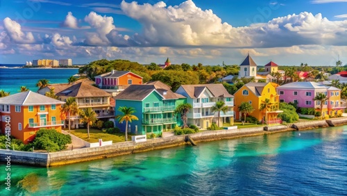 Colorful homes lining the scenic coastline of Nassau, Bahamas, colorful, homes, Nassau, coastline, Bahamas, tropical