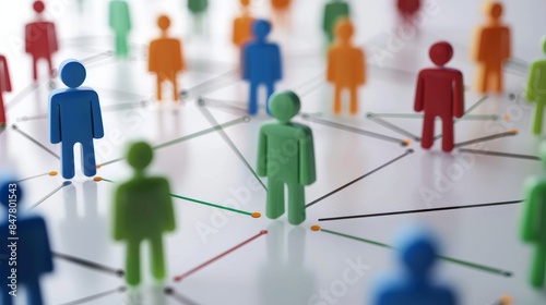 Colorful human figures connected by lines, representing a social network or community. The interconnected figures illustrate teamwork and communication.