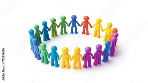 Colorful human figures holding hands in a circle representing unity and diversity.