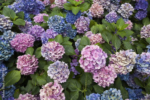 Colorful hydrangea flowers on a summer day