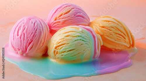 Colorful Ice Cream Scoops Melting on a Vibrant Background