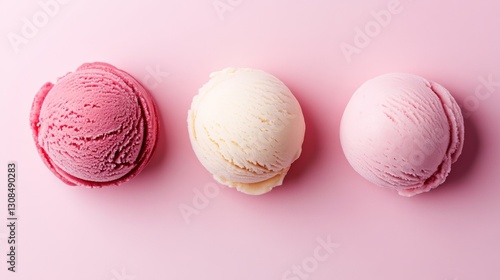 Colorful Ice Cream Scoops on Pink Background for Sweet Treats