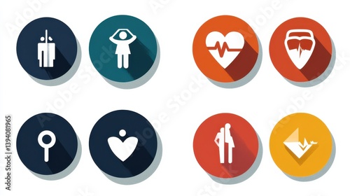 Colorful Icon Set Representing Health, Wellness, and Human Emotions in Flat Design Style