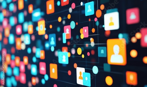 Colorful icons on vote board represent various individuals, showcasing detailed election graph. vibrant colors and distinct shapes create engaging visual experience