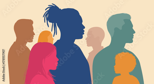 Colorful illustration of a diverse group of people silhouettes standing together, symbolizing unity, inclusion, and a strong sense of community and connection