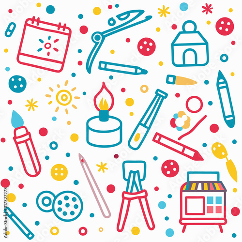 Colorful illustration of art and craft supplies.