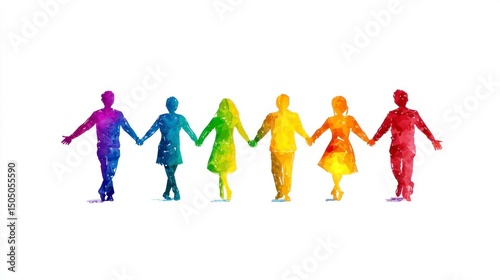 Colorful Illustration of Unity and Diversity with People Holding Hands in a Vibrant Rainbow Spectrum