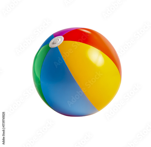 Colorful inflatable beach ball with bright panels isolated on transparent background