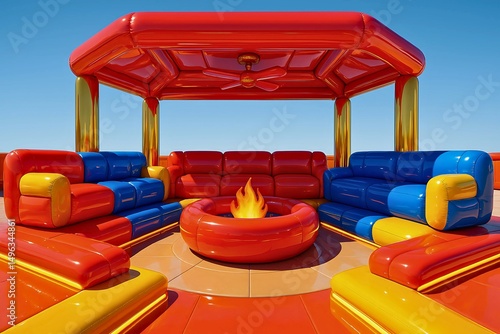 Colorful Inflatable Lounge Area with Fire Pit and Gladiator Theme
