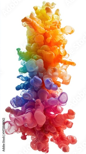 Colorful Ink Cloud in Water Abstract Art Photography on White Background Studio Shot Close Up Detail