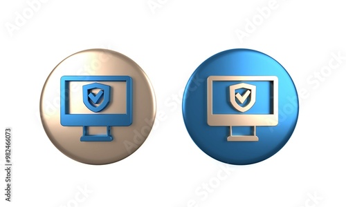 Colorful Insurance online icon isolated on white background. Security, safety, protection, protect concept. Circle button. 3D render illustration