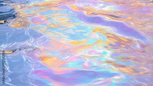 Colorful Iridescent Reflections on Water Surface with Swirling Patterns and Soft Light Effects