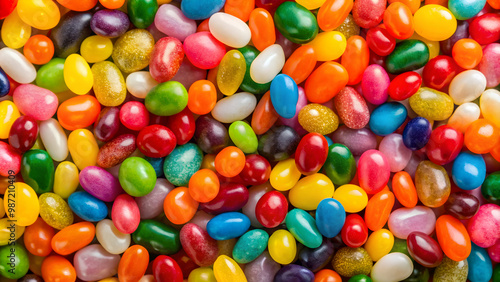 Colorful jelly beans in a vibrant mix of flavors and shapes, jelly beans, colorful, sweet, candy, assortment, rainbow