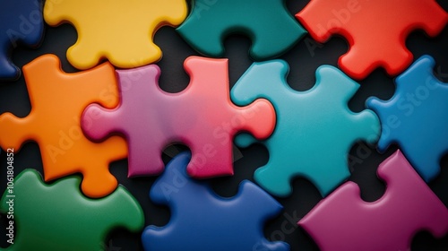 Colorful Jigsaw Puzzle Pieces on Black Background
