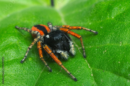 Colorful jumper spider (male of Philaeus chrysops) found in an Italian house during summer