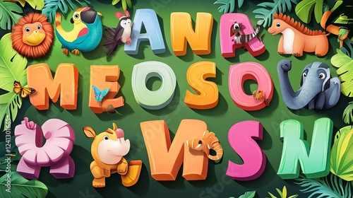 Colorful Jungle Animals and Letters for Children's Education