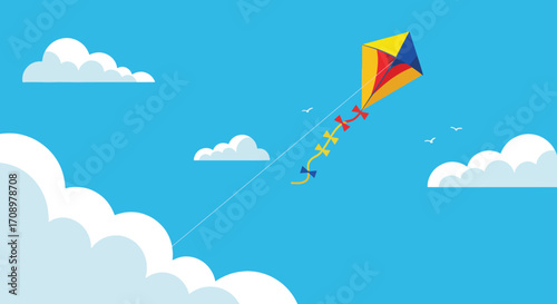 Colorful Kite Flying High in the Bright Blue Sky