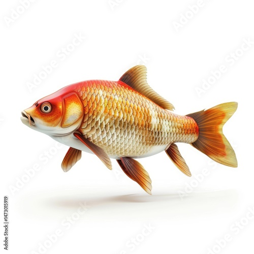 Colorful koi fish, detailed 3d model, isolated on white.
