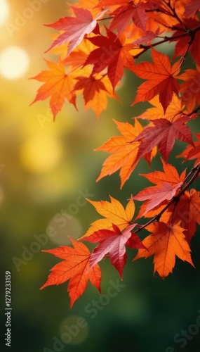 Colorful leaves gently swaying in autumn breeze, nature, seasonal change, tree branch
