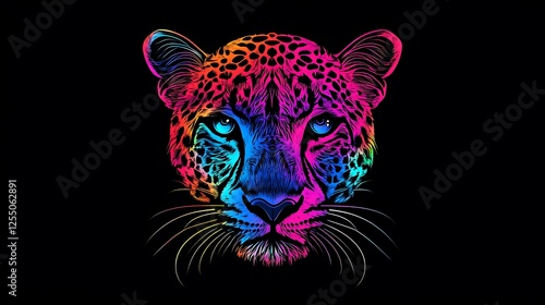 Colorful leopard head portrait on black background. Possible use Graphic design, digital art, or wall art
