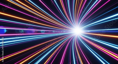 Colorful light trails with motion effect, illustration of high speed light effect on black background