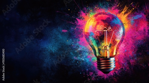 Colorful Lightbulb with Abstract Splash Background Representing Creativity and Innovative Ideas